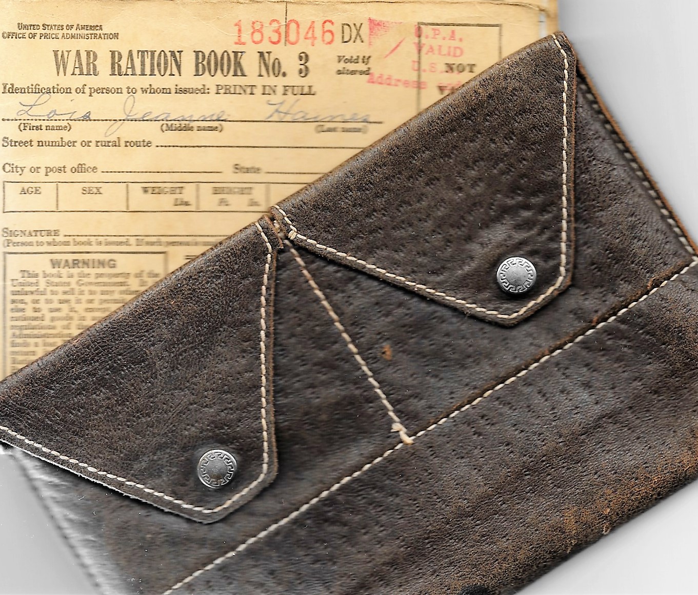 The leather case was my mother's to keep the books safe -- she was always so organized! Not so sure she was too serious though, because we found a note from the authorities that Mrs. Haines was using allotted fuel designated for farm use to go to town too often and needed to curtail that use!!! She and I liked to go to town often to see people and have a Coke at the drug store. She didn't like to be stuck on the farm.